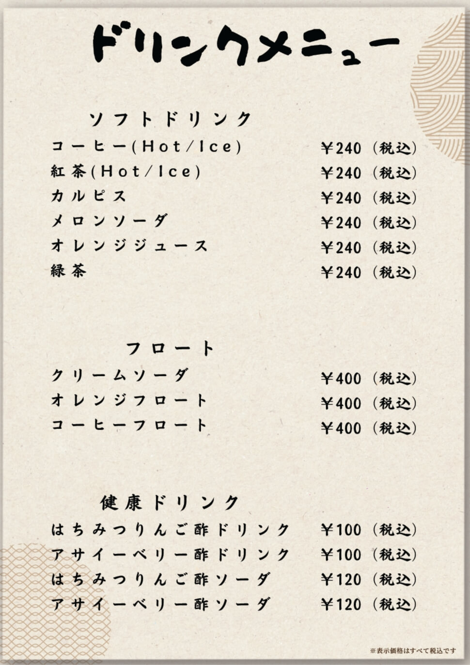 お食事からお子様メニュー、軽いおつまみまで、様々なシーンでお楽しみいただけるメニューを取り揃えています。