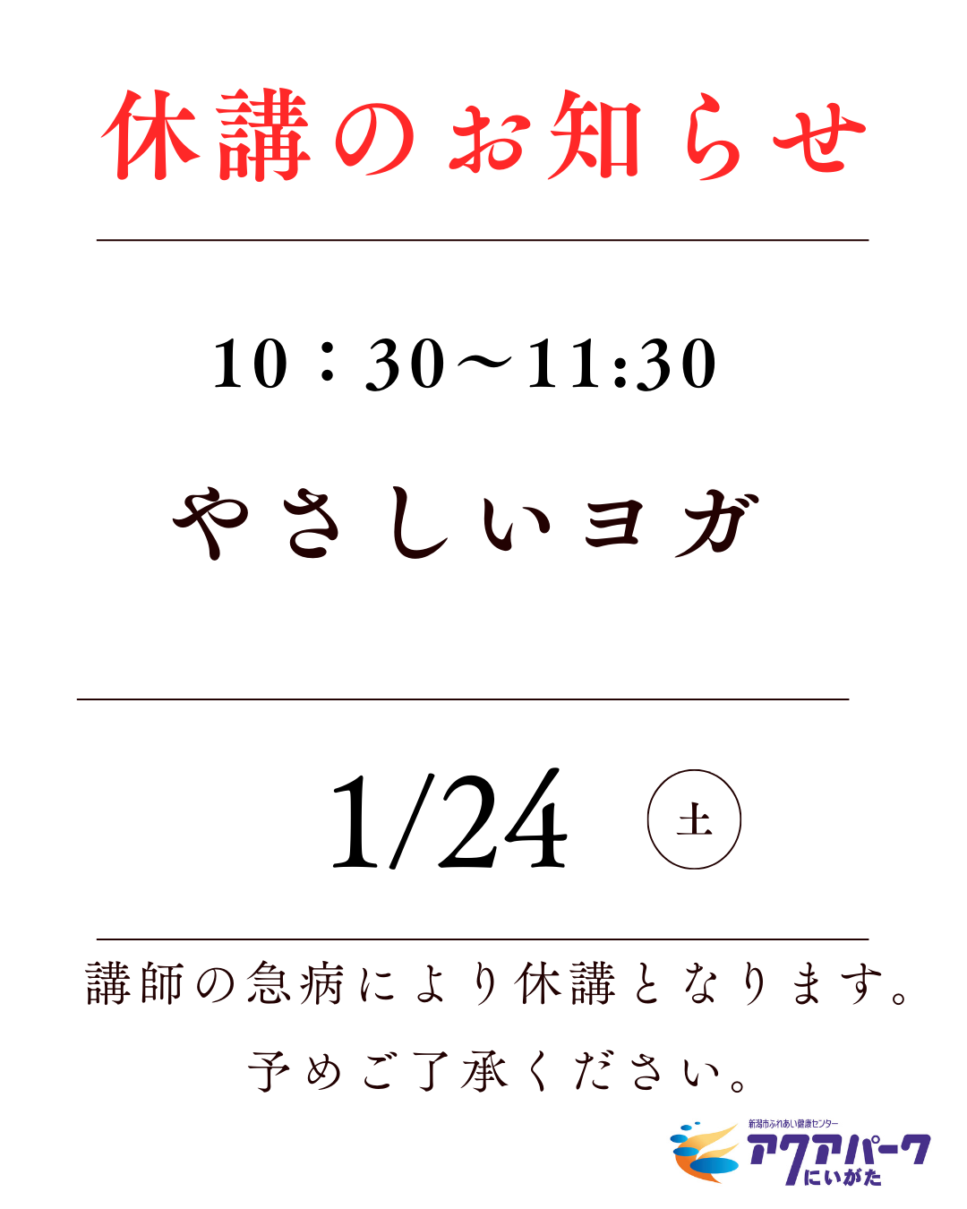 1月24日(土)やさしいヨガ休講のお知らせ